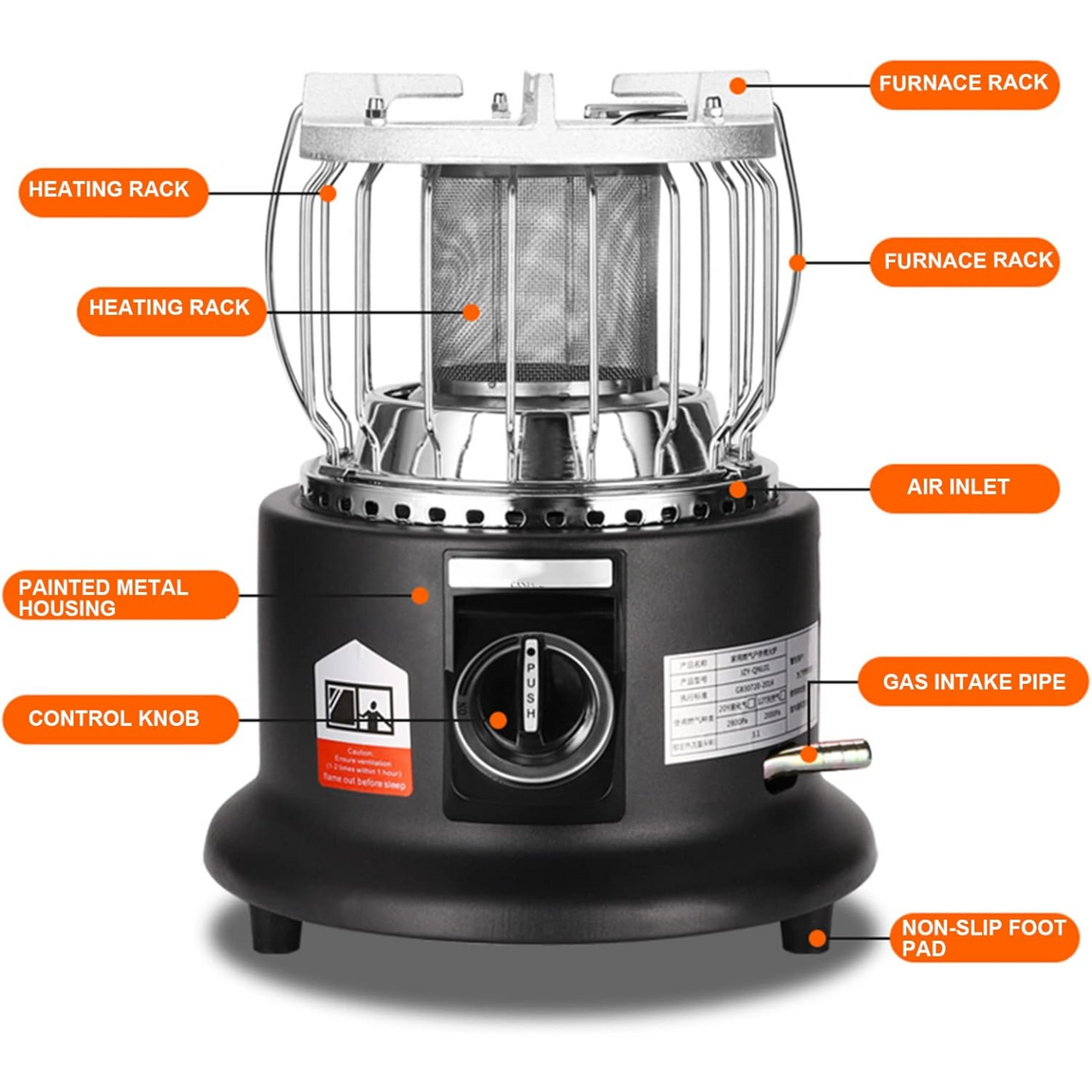 - Efficient Heating System: Compatible with butane, isobutane, and propane gas cylinders, ensuring versatile fuel options.
